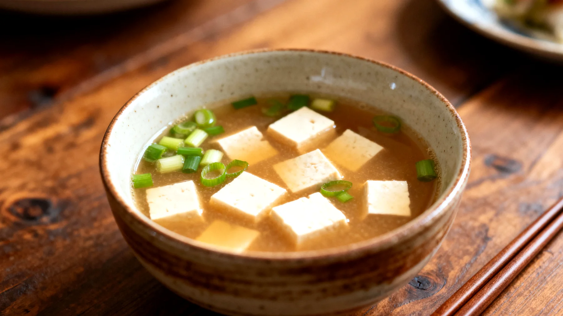 Ilık suya 2-3 yemek kaşığı düşük sodyumlu miso ekleyin. Miso’yu bir kevgirde eritin veya küçük bir kasede suyla karıştırıp ekleyin. Üzerine ince kıyılmış yeşil soğan serpin. Bu basit ritual, gün içindeki koşuşturmadan uzaklaşıp nefes almanızı sağlar ve mutfakta kendinize ayırdığınız birkaç dakika zihinsel bir mola olur.