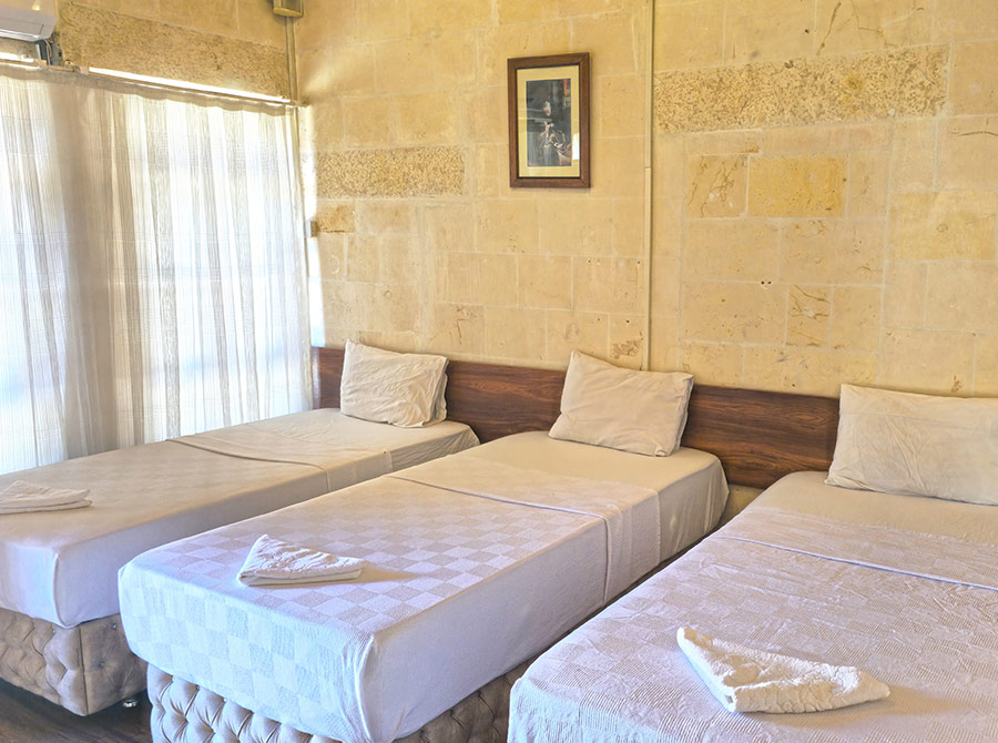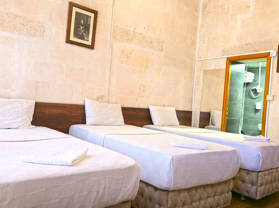 Yıldız Sarayı Konukevi’nin ferah ve konforlu Üç Kişilik Odaları, aileler ve arkadaş grupları için ideal bir konaklama seçeneği sunuyor. Geniş kullanım alanına sahip bu odalarda üç ayrı yatak veya bir çift kişilik yatak ile tek kişilik yatak kombinasyonu yer almakta, böylece misafirlerin ihtiyaçlarına göre esnek bir konfor sağlanmaktadır. Modern banyo olanakları, klima, düz ekran TV, ücretsiz Wi-Fi ve tüm temel ihtiyaçlar düşünülerek hazırlanmış bu odalar, misafirlerine ev sıcaklığında bir atmosfer sunar. Uzun günlerin ardından dinlenebileceğiniz rahat ortamı ve şık dekorasyonuyla öne çıkan Üç Kişilik Odalar, hem kısa süreli hem de uzun süreli konaklamalar için idealdir.